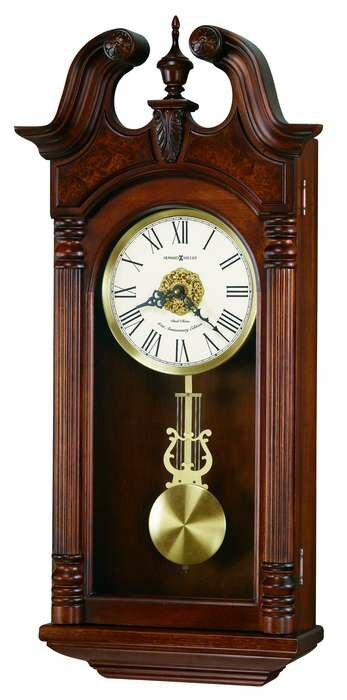 The Teressa Wall Clock by Howard Miller has an Heirloom Cherry finish on select hardwoods and veneers.