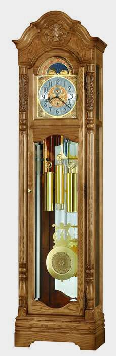 This Floor Clock Features A Bonnet Pediment With A Decorative Shell And Vine Overlay And Bookmatched Olive Ash Burl Overlays The Brushed Satin Brass Dial Includes A Silver Chapter Ring With Applied Satin Black Arabic Numerals, Elaborate Corner Spandrels And A Center Disk With An Astrological Blue Moon Phase The Brushed Satin Brass Pendulum Features A Center Disk Which Complements The Dial The Weight Shells Are Also Finished In Brushed Satin Brass Mirrored Back An Heirloom Record Certificate With Tube Is Included For Recording Your Clocks Ownership History For Future Generations Cable Driven, Westminster Chime Kieninger Movement With Automatic Nighttime Chime Shut Off Option Finished In Distressed Heirloom Oak On Select Hardwoods And Veneers Illuminated Dial For Viewing In A Darkened Room Adjustable Levelers Under Each Corner Provide Stability On Uneven And Carpeted Floors Automatic Nighttime Chime Shut Off Option Locking Door For Added Security Special Feature