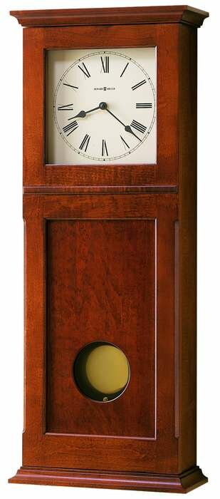 The Ann Lee Wall Clock by Howard Miller has a Shaker Cherry finish on select hardwoods and veneers.