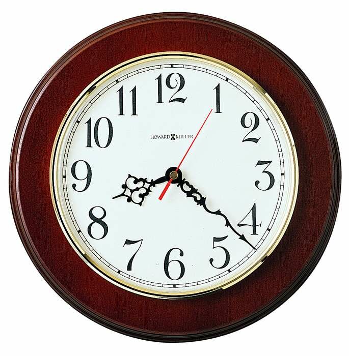 The Brentwood Wall Clock by Howard Miller is finished in Windsor Cherry on select hardwoods and veneers.
