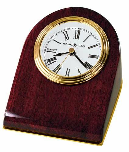 The Bristol Table Clock by Howard Miller has a high-gloss, Rosewood Hall finish on select hardwoods.