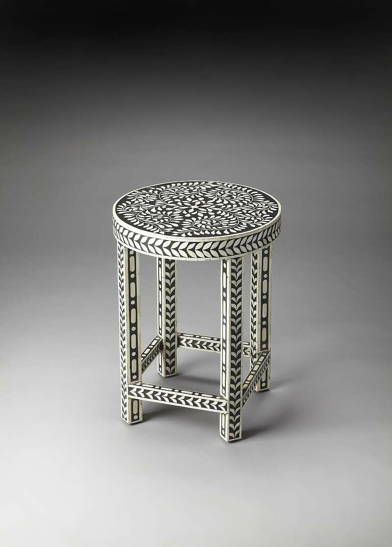 Black Bone Inlay with a Light distressed finish. Made from Select Wood Solids, Mdf, Resin, Bone Inlay. Fully Assembled. Ships via UPS/FedEx.