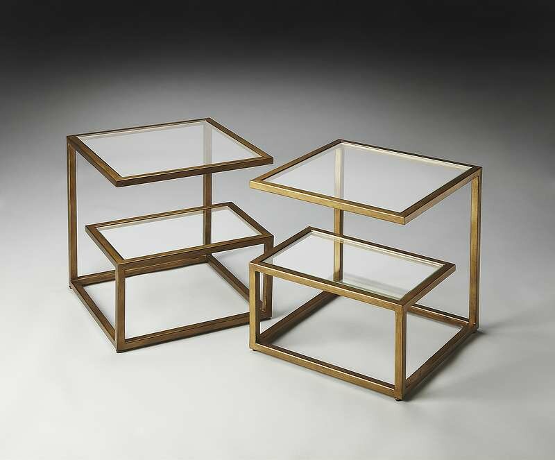 This Bunching Table, crafted from cast aluminum and finished in our Antique Gold, features an upper and lower glass top plus mesmerizing geometric shapes, especially when two or more are gathered together. You see, the table works well alone but, cliqueish by nature, prefers to hang out with one or more of its mates. No Distressing. Made using Cast aluminum, tempered glass. Comes Fully Assembled. Ships via UPS/FedEx.