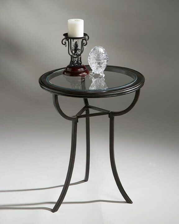Finished metal with inset beveled glass top. Some Minor Assembly Required. Ships via UPS/FedEx