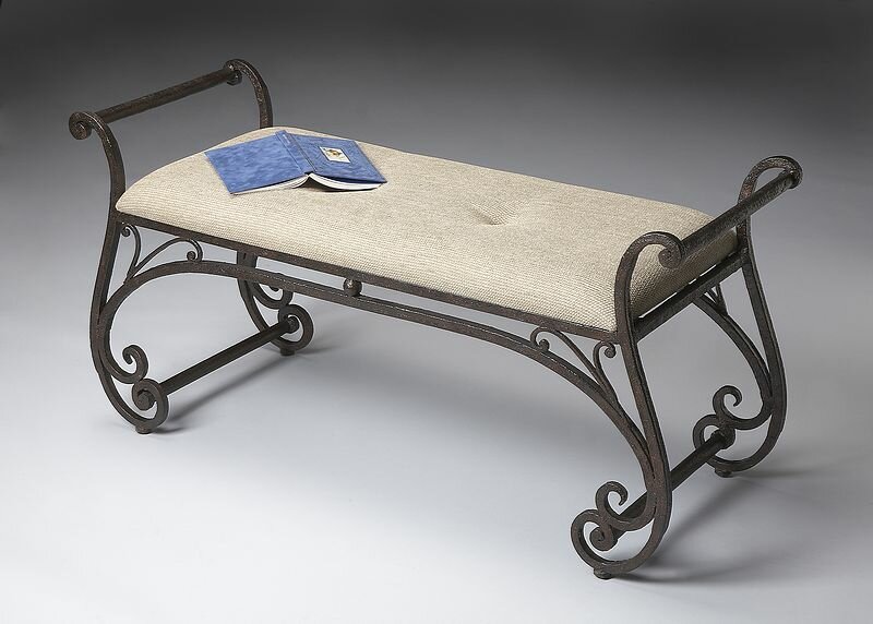Finished metal. Upholstered cushion seat. Fully Assembled. Ships via Freight Truck