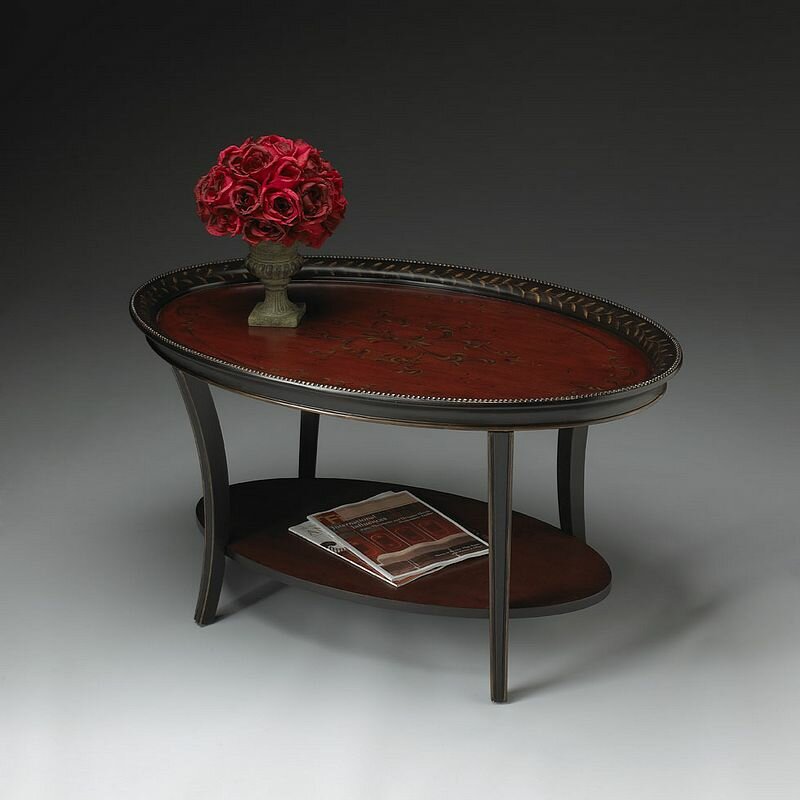 Butler Specialty Traditional Red and Black Oval Cocktail Table