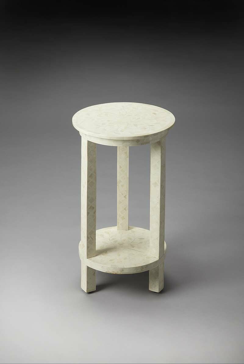 White Bone Inlay with a Light distressed finish. Made from Select Wood Solids, Mdf, Resin, Bone Inlay. Fully Assembled. Ships via UPS/FedEx.