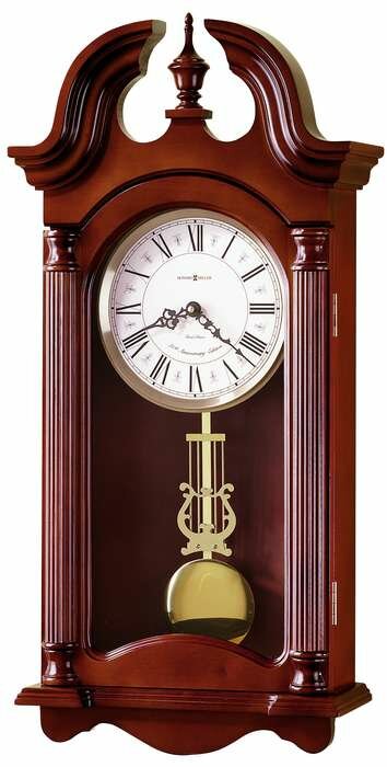 The Everett Wall Clock by Howard Miller is finished in Windsor Cherry on select hardwoods and veneers.