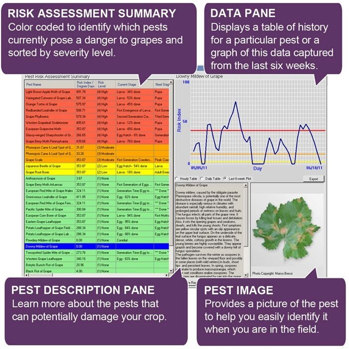 The IPM forecasting Module for Grapes provides the final step in linking your weather data to actual pest risk, giving you a powerful new tool in the battle against crop pest damage.