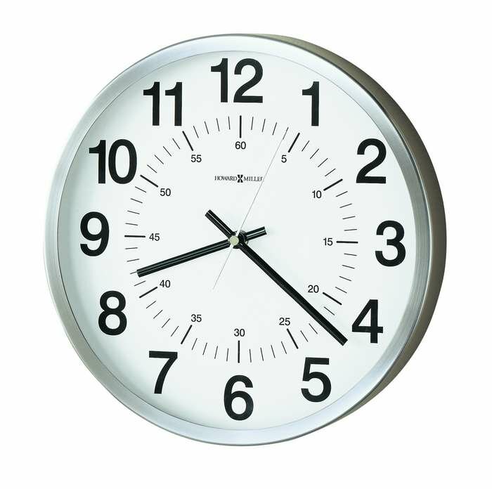 The Easton Wall Clock by Howard Miller features a white dial with bold black Arabic numerals and a separate seconds track.