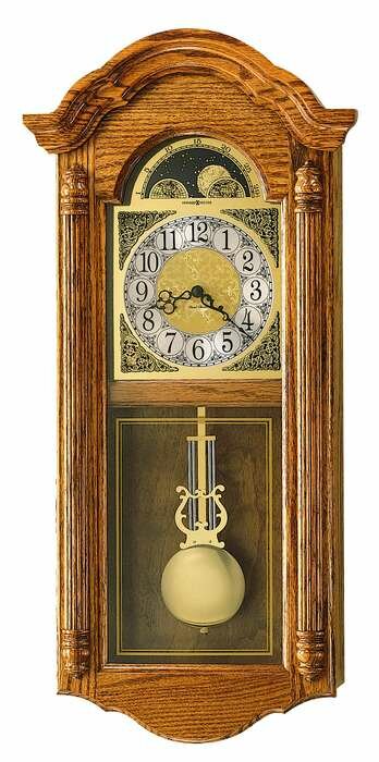The Fenton Wall Clock by Howard Miller is finished in Golden Oak on select hardwoods and veneers.