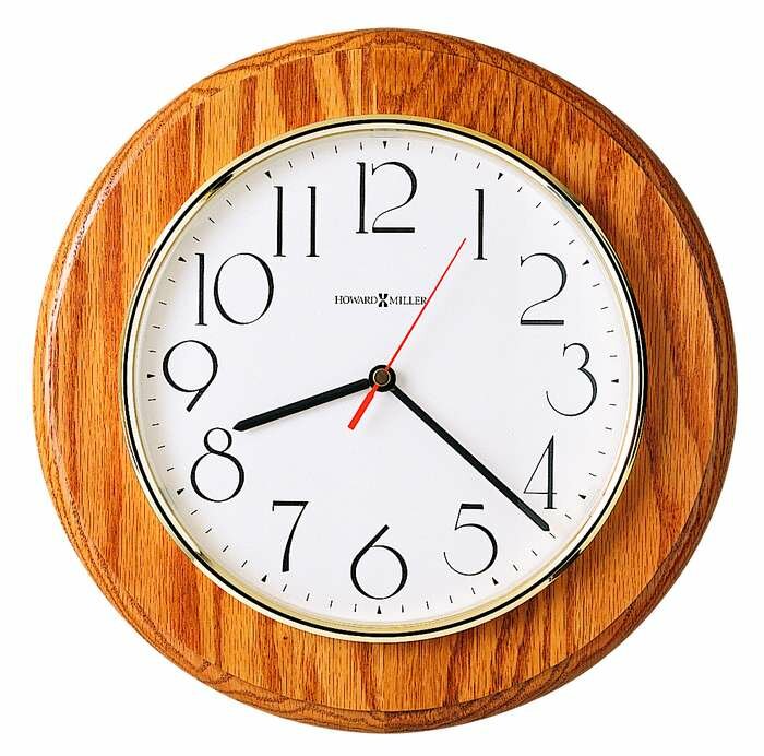 The Grantwood Wall Clock by Howard Miller is finished in Champagne Oak on select hardwoods and veneers.