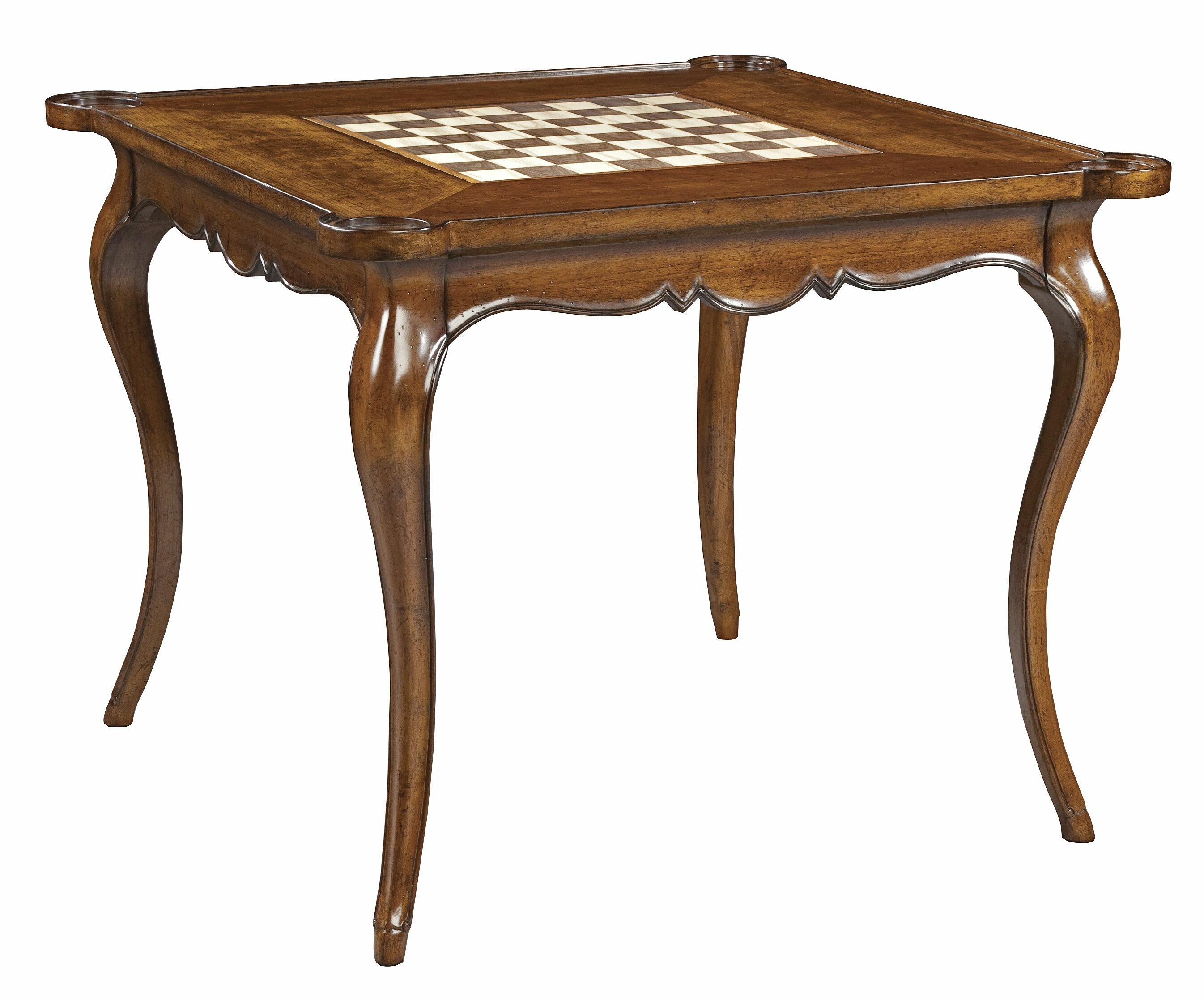 • Reversible inset center section with veneer on one side, game board on opposite side.