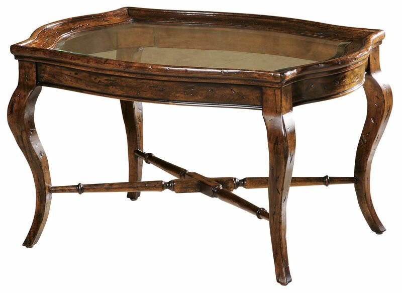 Rue de Bac Oval Glass Top Coffee Table in Cognac Finish
