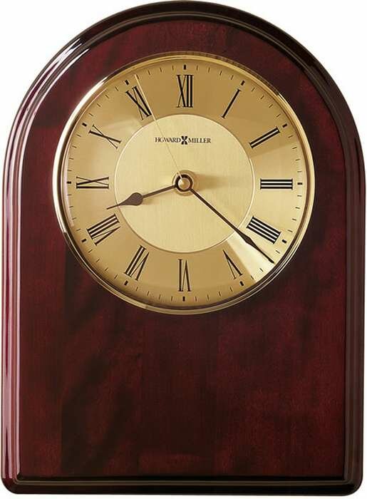 The Honor Time III Plaque by Howard Miller is a high-gloss, Rosewood Hall plaque with arched top, profiled edge, and polished brass-finished dial and bezel.