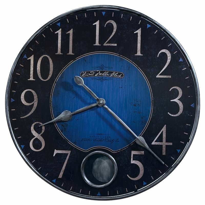 • This 26.25" gallery wall clock features an antiqued cobalt blue and black dial framed in an antique nickel finished metal frame.