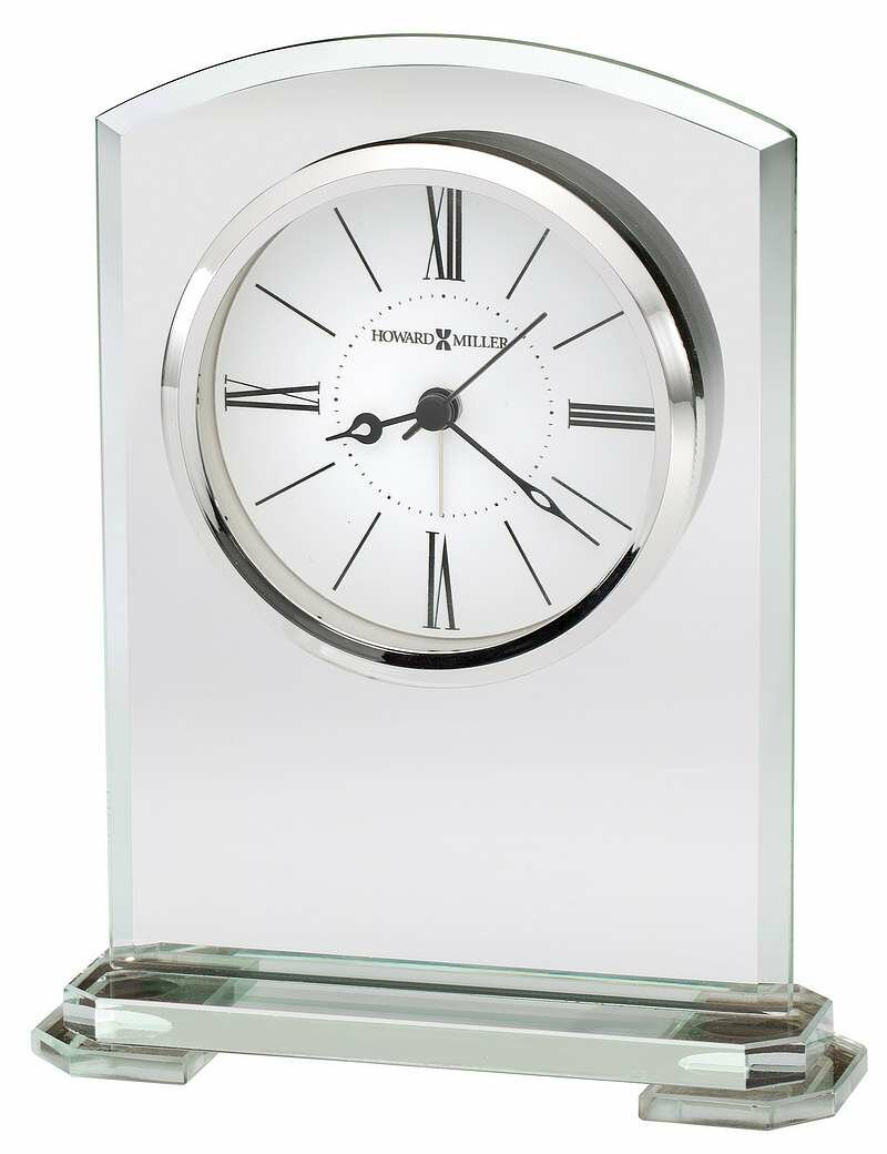 • Stylish, gently arched beveled jade glass clock with glass base and feet.