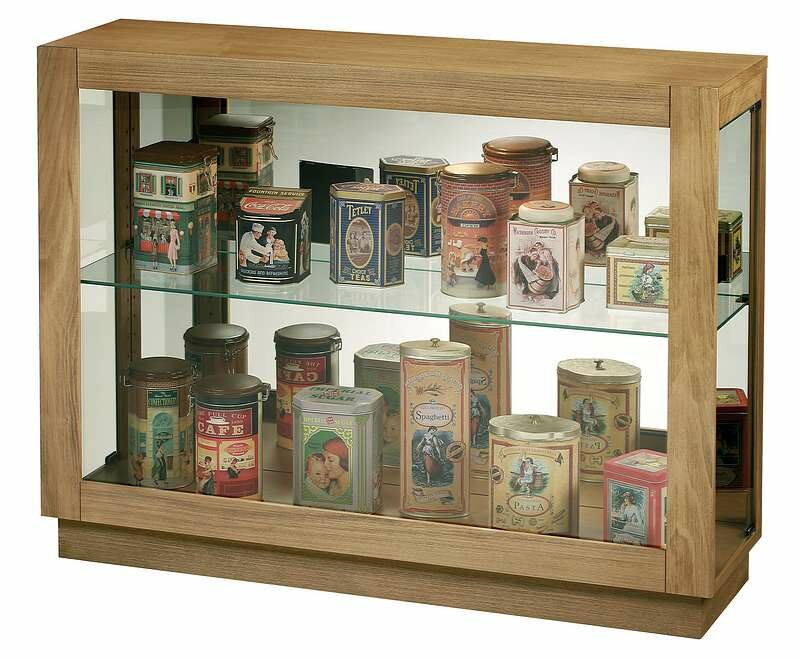 • One adjustable glass shelf allows for two levels of display; continuous holes for shelf adjustment.