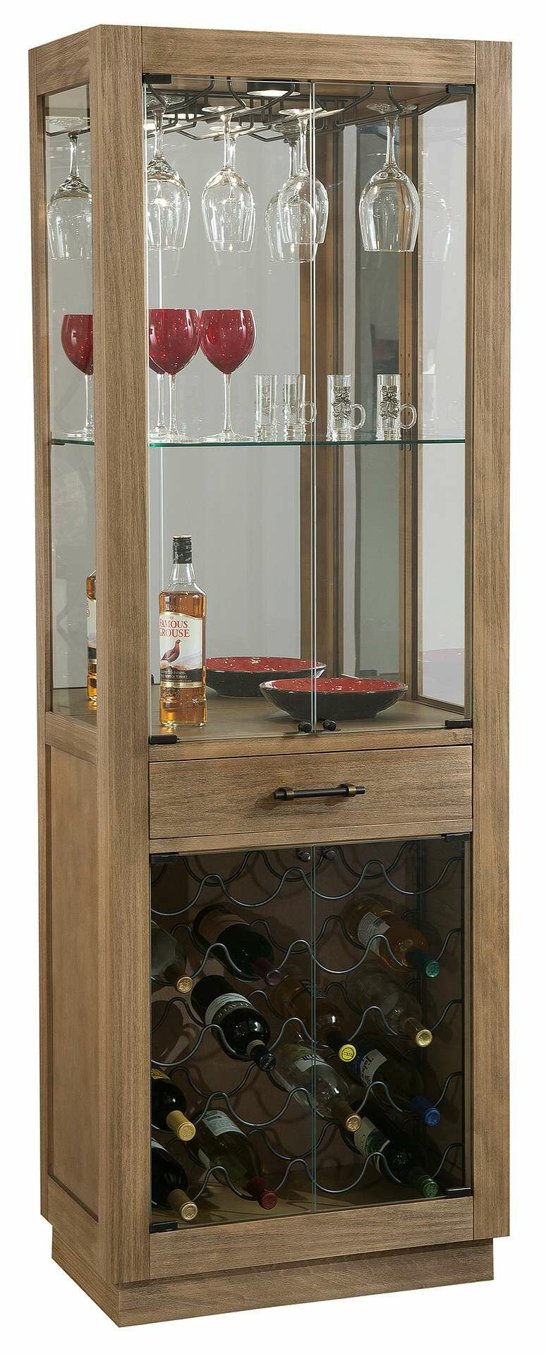 • The lower cabinet features a metal wine rack with a capacity of up to 20 bottles, and a drawer which offers storage for spirits, mixers, and bartender's guides.