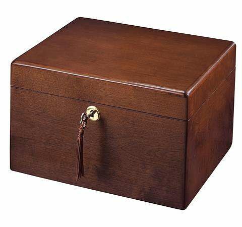 • Brass hinges and a brass finished key with decorative tassel.