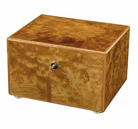 • Memorial chest/urn featuring a high-gloss Natural finish on rare elm burl veneer on solid hardwoods.