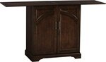 • This portable, Hide-a-Bar cabinet is finished on all sides and features decorative raised panels on the two front doors and on the back.