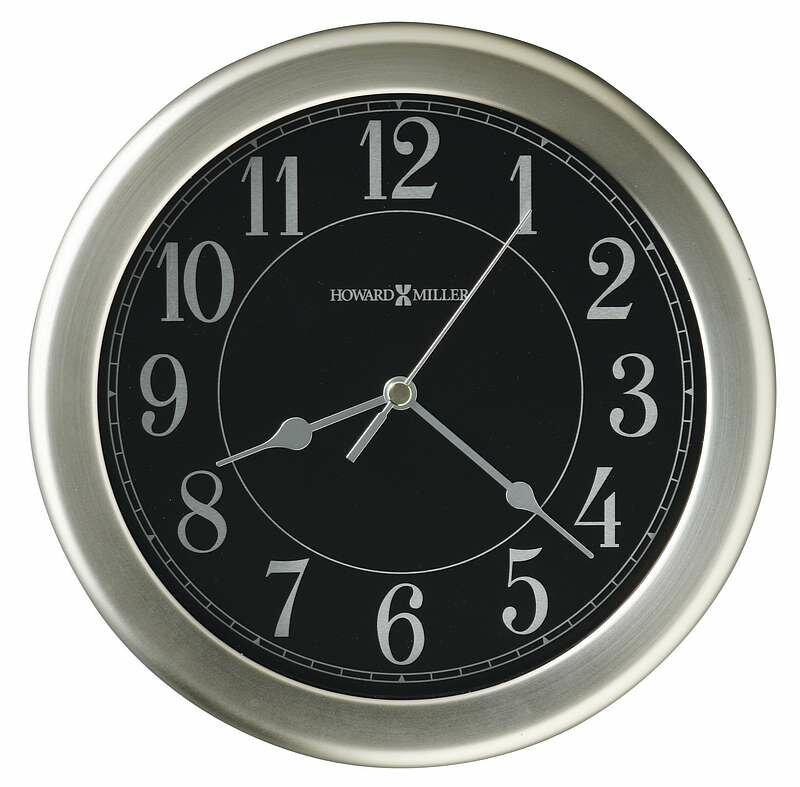 • This 8-1/2'' diameter wall clock with brushed nickel-finished case offers a black dial with silver Arabic numerals, a minute track and a glass crystal