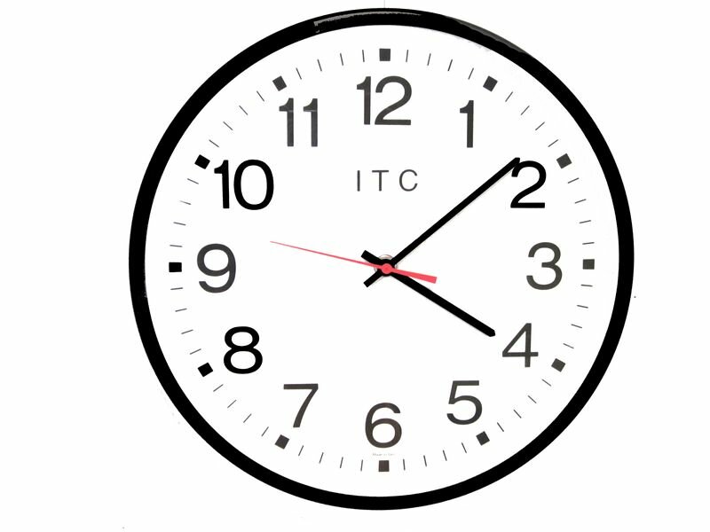 This wall clock features a black metal frame, white dial with Arabic numbers and straight second and minute hands. The lens is made of a special shatter-resistant material.