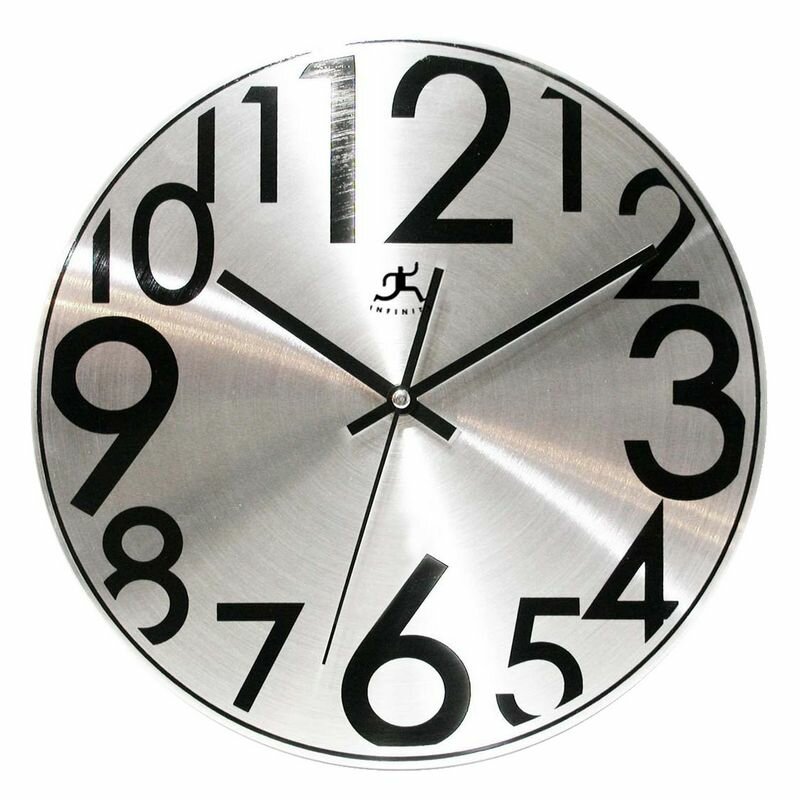 Add some style with this silver metal wall clock. The bold Arabic numbers and black hands are a great feature to this time piece.
