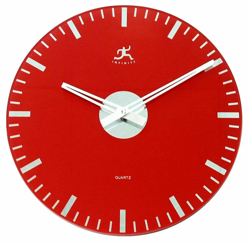 Make any room shine with this red mirrored wall clock. The silver dash marks and uniquely styled hands make this clock an eyecatching addition to any docor.