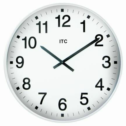 This wall clock features a white resin frame, white dial with Arabic numbers and straight hands. The lens is made of a special shatter-resistant material.