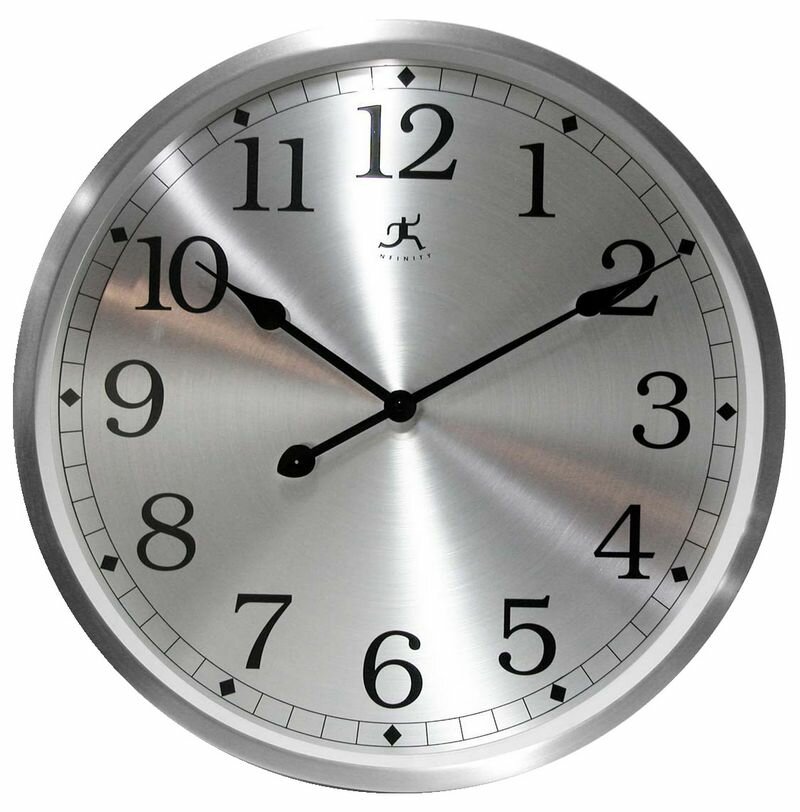 Let style shime from your wall with this sleek modern wall clock. This clock is sure to stand out with the circular brushed aluminum dial and black Arabic numbers.