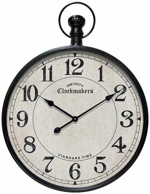 Grand Central pocket watch style large wall clock can make a great addition to any traditional home décor. At a max height of 30" this skillfully crafted has large easy to read numbers that will look great on any wall. H 30" x W 23". Steel Frame.
