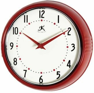 Infinity 9.5" Retro Round Metal Wall Clock (Red) - 10940-RED