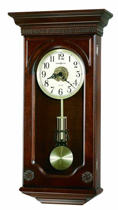 The Jasmine Wall Clock by Howard Miller has a Hampton Cherry finish on select hardwoods and veneers.