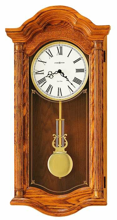 The Lambourn II Wall Clock by Howard Miller is finished in Golden Oak on select hardwoods and veneers.