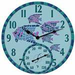 StoneWorks 14" Mosaic Fish Clock Thermometer Combo - 91412