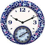 StoneWorks 14" Mosaic Sea Clock Thermometer Combo - 91502