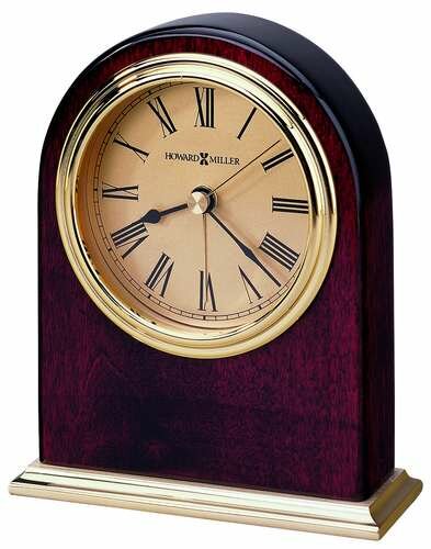 The Parnell Table Clock by Howard Miller is a high-gloss, Rosewood Hall finished alarm clock that features a polished, waterfall-style, gold-tone bezel.