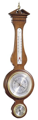 • A thermometer, barometer, and hygrometer are encased in a handsome hardwood frame.