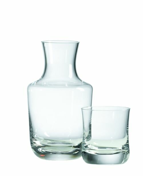 You will find these brilliant lead-free crystal water carafes in the worlds most elegant and posh hotels.  There is no more elegant way to serve water than this! Hand made in Europe of the finest crystal. Height: 8 3/4 in X  Capacity: 26 oz