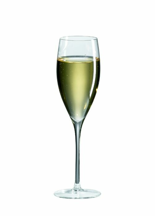 Champagne is the most northerly wine-growing region of France. Its chalky soil and unique climate produce one of the world's most exciting wines. Champagne like all cool climate wines require a tight bowl that will bring into focus and concentrate the delicate perfume of such wines. The Ravenscroft Vintage Cuvee Champagne glass, made of brilliant lead-free European crystal with a whisper light hand and mouth feel is the perfect precision tool for the privilege of Champagne. Many wine lovers miss the beautiful perfume of Champagne. This full size delicate glass with a capacity of over eight ounces should never be filled more than one third full, leaving room for the perfume to be concentrated. Experience the world's most exciting classily formed Champagne glass and never miss the complete privilege of Champagne again! Hand made in Europe of brilliant lead-free crystal.