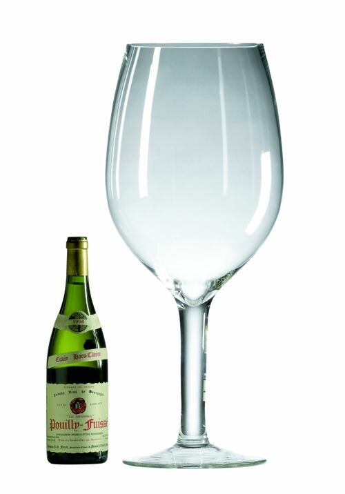This huge Ravenscroft Maxi Martini glass is sure to become the conversation starter in your home!.  The Maxi Bordeaux, made from the most brilliant 100% lead-free crystal, is hand crafted in Europe. Height: 21 1/2 in X  Capacity: 336 oz