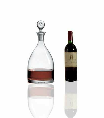 Adorned at its peak by a round top that recalls a lone tree standing triumphant, the Monticello Single Decanter is stoic and enduring.  Monticello is the name Jefferson gave to his estate in the hills of Virginia.  Height: 11 1/4 in X  Capacity: 38 oz