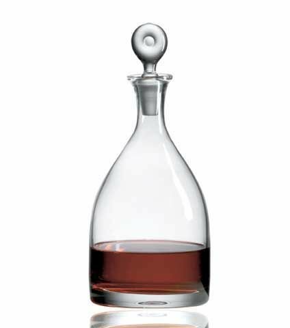 Adorned at its peak by a round top that recalls a lone tree standing triumphant, the Monticello Single Decanter is stoic and enduring.  Monticello is the name Jefferson gave to his estate in the hills of Virginia.  Height: 11 1/4 in X  Capacity: 38 oz