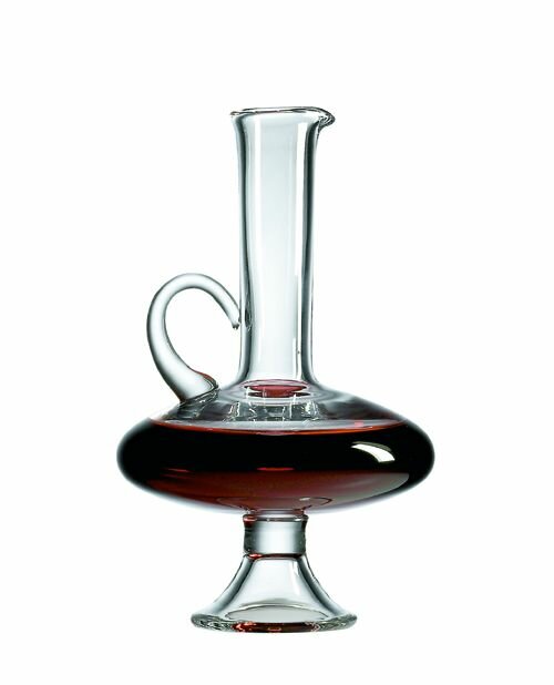 Reminiscent of old world aesthetics and craftsmanship.  The Emillion Decanter. Just above the dramatic pedestal, the wide base creates a breathing space, while the narrow neck maintains it.  Height: 11 1/2 in X  Capacity: 32 oz