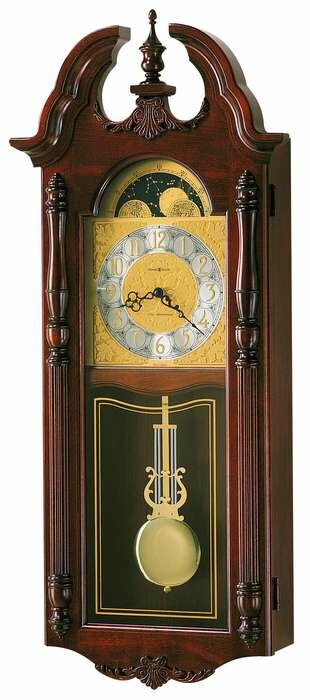 The Rowland Wall Clock by Howard Miller is finished in Windsor Cherry on select hardwoods and veneers.