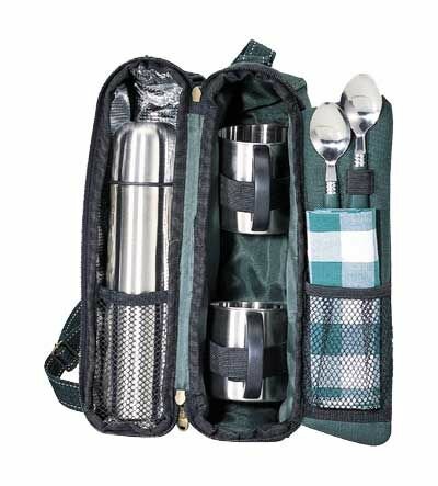 Sutherland's compact coffee bag set is perfect when simplicity is your style. It is lightweight and has an adjustable shoulder strap. Carry it anywhere for a quick pick me up! Service for 2. Great gift idea for the coffee lover on the go!