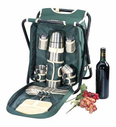 This innovative 3-in-1 coffee and cheese backpack & chair is just what you need for your next camping trip or picnic outing. It lets you bring snacks and drinks with you while providing a place to sit too. This great backpack & chair has everything you need for a coffee and cheese event for 2!