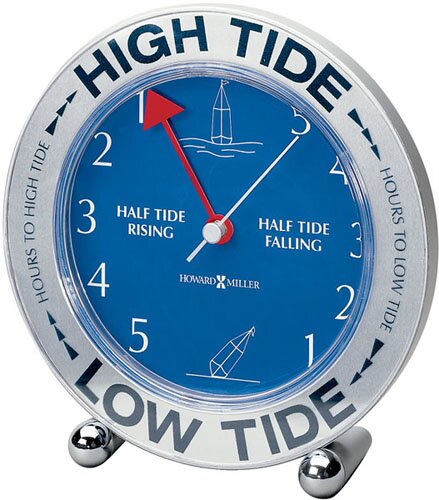 The Tide Mate III Weather and Maritime Clock by Howard Miller is a round table clock with silver tone case.
